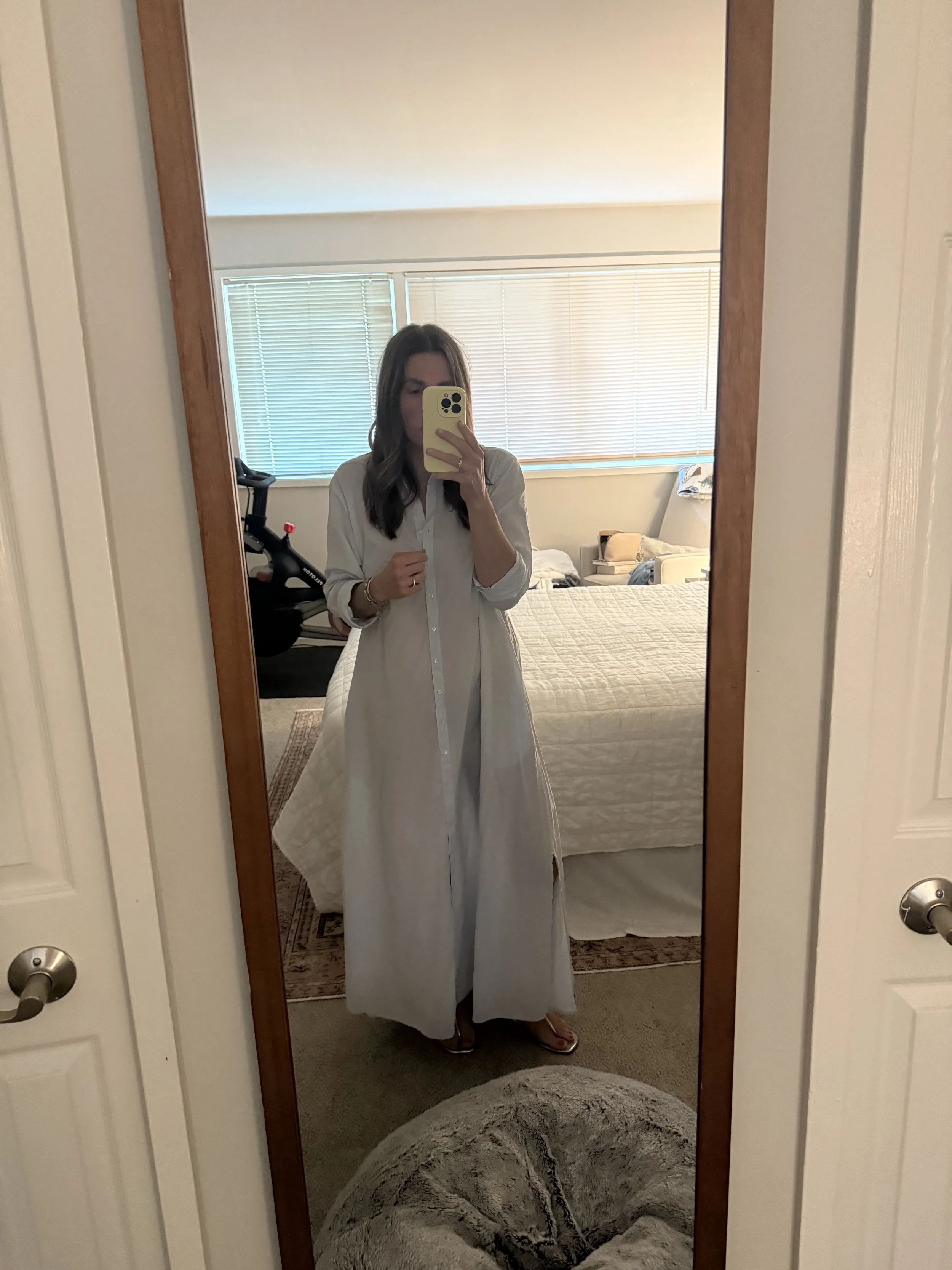 let’s start with the travel day. i was part of a roundtable discussion about spanish wine on monday. the meeting lent itself to a day trip, so i knew i was taking the train up, attending my meeting, and heading home. i wanted to feel comfortable being on the train for so much of the day, but also look chic and pulled together for my meeting. i pulled out one of my favorite staple shirt-dresses, draped a sweater for when i was cool, and used my favorite silver sandals, which felt chic but comfortable for the train and meeting.